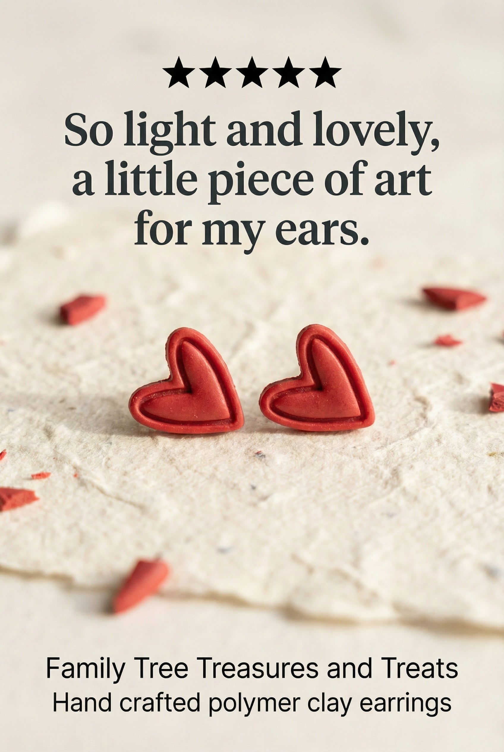 Made with the warmth and creativity behind every piece at Family Tree Treasures and Treats, these little hearts are designed to bring joy.